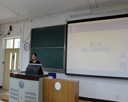 活动第一项,全体起立,奏唱国歌。随后,胡小溪老师发表了简短讲话,表扬了同学们在学生社团中做出的成绩,表达了对同学们为自己的人生和学院增光添彩的殷切希望。最后,胡小溪老师以一项小游戏--——“我最棒”结束讲话,鼓励同学们给自己点赞,为自己加油。