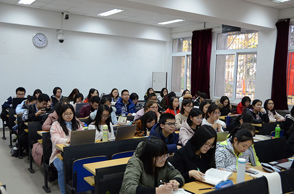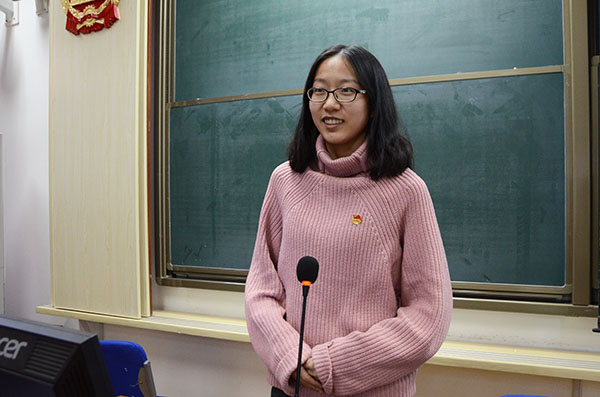 郑伊楠同学采用日常生活中的相关事例向大家讲解了PPT制作的部分问题,从“如何做一套合格的PPT”、“如何使PPT更加美观”两个方面展开论述,详细准确地说明了在PPT制作中应该注意的问题和相应的具体操作步骤。在向同学们推荐了有关的常用软件和网址后,郑伊楠同学展示了以往自制的PPT,语言风趣幽默,讲解细致精妙,加深了同学们对PPT制作方法的理解。