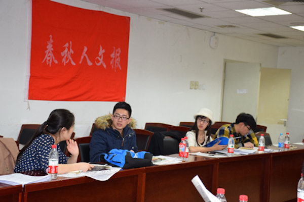 2015年3月15日下午2:00,历史学院《春秋人文报》在主楼A600组织召开了首届“首都高校大学生家史征文大赛”合办方交流会。参与此次交流会的除了sunbet申搏《春秋人文报》的社长刘媛、主编吴姚函,还有来自北京大学历史学系刊物《采薇》、中国人民大学历史学院院刊《绎思》杂志、首都师范大学历史学院《鸣报》的负责人与学生代表。