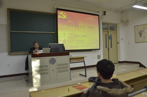近年来,历史虚无主义思潮在我国再度沉渣泛起,这股思潮打着“学术反思”和“理论创新”旗号,借“还原历史”、“解构历史”之名,歪曲历史,哗众取宠,具有很大的欺骗性、迷惑性和渗透性。作为党员,应坚定“三个自信”,通过理论学习,不断提高自己明辨是非的能力;同时作为历史学人,更要树立正确的历史观,坚决抵制历史虚无主义的侵蚀。下学期,历史学院党校还将结合中央有关精神与历史学院党建特色,举办一系列理论学习讲座,以期提升党员的党性修养与整体水平。