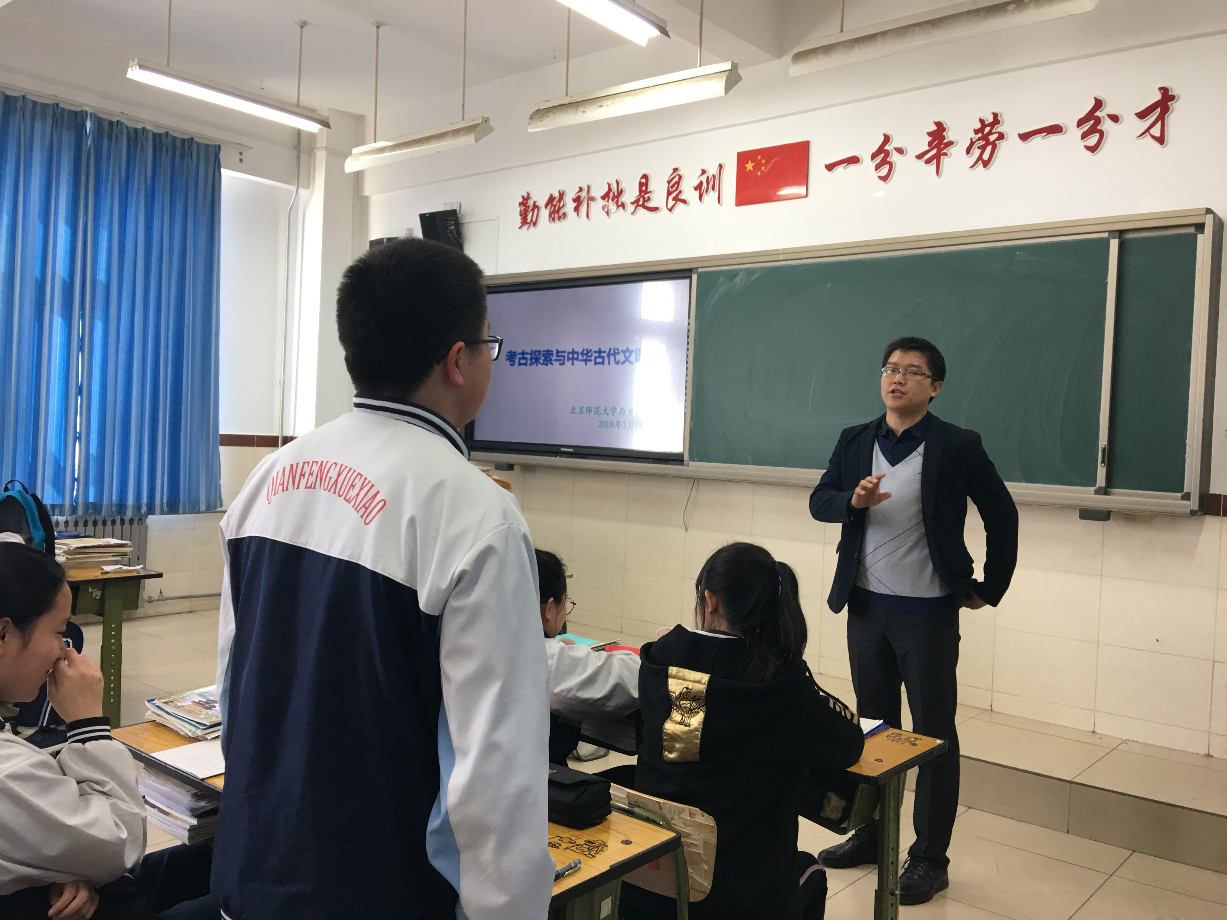 据悉,历史学院与昌平前锋学校有长期的合作关系,历史学院每年都会派同学去前锋学校讲授史学课程,以弘扬中华文化,让青少年同学知道国史,了解国史,通晓国史,既培养中学生的史学兴趣,又助于中学生从小树立民族文化自信心。对历史学院的同学来说,既能在讲授中进行自我升华,又能锻炼专业技能。本次活动是本学期的第一次授课,希望接下来双方能达成更良性、长期的合作。