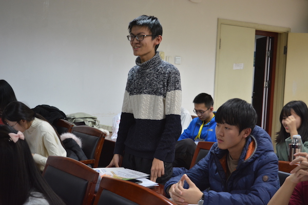在新老成员总结发言环节中,同学们畅谈论自己这一学期以来的感受。小组2017级新成员们表示,在小组一个学期的集体学习中,学习到了许多系统的时事知识。小组将历史学专业学习与时事研究相结合,让同学们既能够理性地回顾过往历史,又能够清醒而深刻地看待当下,“鉴前世之兴衰,考当今之得失”。他们还特别提到了小组近期举办的“News Today”环球论坛活动,通过这次活动,新同学们学习到了一种“治之以精,而益求其精”的精神。最后,新同学们对小组领导团队成员一学期以来对他们毫无保留的付出与帮助表示了感谢。