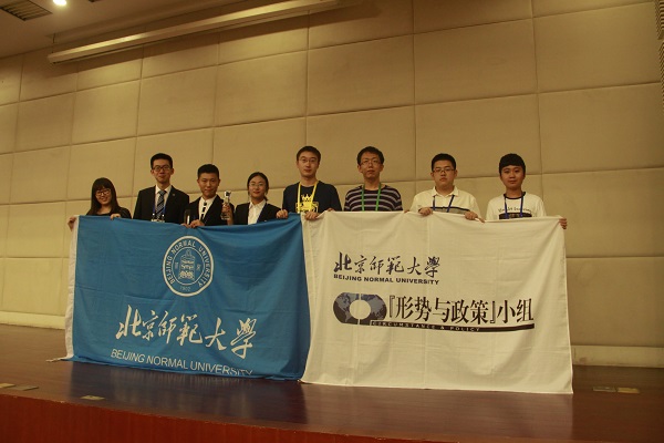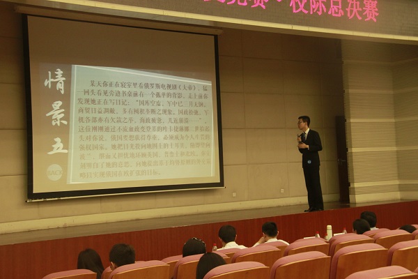 在5月14日举行的复赛中,我校代表队以分赛区第一名成绩晋级。当天共有sunbet申搏官方网站、对外经贸大学、北京外国语大学、北京第二外国语大学、中国政法大学、国际关系学院、外交学院和首都师范大学八支队伍参加决赛。比赛共分为“浮云在一决”“往来成古今”“读书破万卷”“狭路相逢勇者胜”“柳暗花明又一村”五个环节。第一环节“浮云在一决”中,师大选手以全对战绩晋级。第二环节“往来成古今”要求选手置身某一历史时刻与著名历史人物对话,指导外交方针政策,李博轩同学与俄国叶卡捷琳娜大帝模拟对话,畅谈俄罗斯帝国的崛起之路。第三环节“读书破万卷”中,我校选手沉着冷静,完美通关。第四个环节“狭路相逢勇者胜”要求每队各派出一名选手,在某一特定的历史背景下扮演不同的政治人物,为争取本国利益的最大化而展开交锋。我校代表队派出张弘毅同学,与对外经济贸易大学选手围绕朝鲜战争后驻军与战俘遣返问题展开和平谈判。双方各自陈述观点,理性分析,将全场气氛推向高潮,张弘毅同学利用对方漏洞,层层推进,取得不俗表现。前四环节我校选手通过不懈努力,一直保持着优势,并逐步扩大分差。第五环节“柳暗花明又一村”为决胜环节,比赛进程扣人心弦,选手们使出浑身解数,运用自己的冷静分析和智慧,确保我校稳居第一。