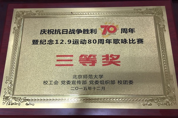 2015年12月9日晚,sunbet申搏官方网站庆祝抗日战争七十周年暨纪念“一二·九”运动八十周年歌咏比赛决赛在学生活动中心举行。今年是中国人民抗日战争胜利暨世界人民反法西斯战争胜利70周年,这给今年的比赛增添了更重大的意义。因此,今年比赛由师生共同参与。