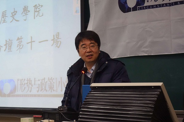 最后,历史学院院长杨共乐老师作总结发言,充分肯定了小组自成立以来所取得的工作成果,并对小组的发展提出了更高的要求和殷切的期望。杨院长对参与此次环球论坛展示的同学们的表现给予较高评价。接着,杨院长从史学研究的角度提出:面对时事问题,不能仅仅停留在分析国际关系表象的层面上,要进入历史的层面的新要求,希望同学们继续培养历史思维,学会从历史的角度思考分析问题,运用充分的资料,让结论更有厚度和深度。杨院长指出,每个学生都应该保持对于学习和生活的激情,这样才能长远地走下去;同学们要树立更高的理想并努力追求,让自己成为一名国家需要的有思想的新型人才。最后,杨共乐院长希望“形势与政策”小组蒸蒸日上,希望同学们健康、全面、快速成长,继续钻研,取得更好的成绩。老师们的发言让同学们受益匪浅。本次活动在热烈的掌声中圆满落幕。