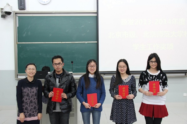 2014年12月21日,历史学院2014学生工作表彰大会在化二教室召开。本次大会旨在表彰过去一年中有突出贡献的集体和个人,并颁发国家奖学金、国家励志奖学金、京师奖学金、白寿彝史学论著奖、三好学生等多个奖项和荣誉称号,鼓励全体同学在新的一年里继续向前,不断开拓创新。