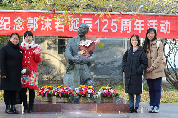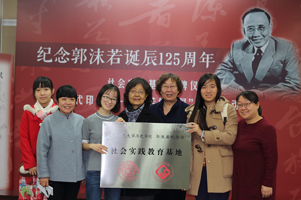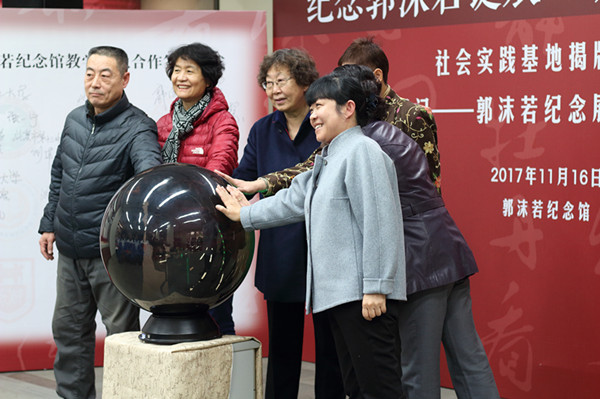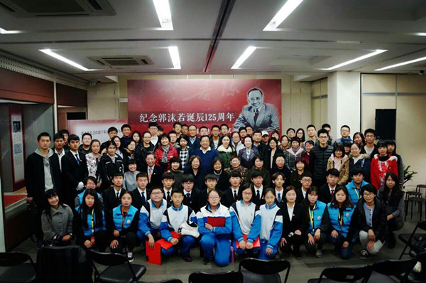 为纪念郭沫若诞辰125周年,11月16日下午,sunbet申搏官方网站分团委书记胡小溪、历史志愿讲解队队长杨丹、副队长王佳玥前往郭沫若纪念馆参加教学实践基地挂牌暨“时代印记”巡展启动仪式。北京“8+”名人故居纪念馆的领导和郭沫若先生的后人共同为“时代印记——郭沫若诞辰125周年纪念展”启动揭幕仪式。本次展览为郭沫若在中国的5个纪念地首次共同联合举办,计划将在未来的一年中进行巡展。