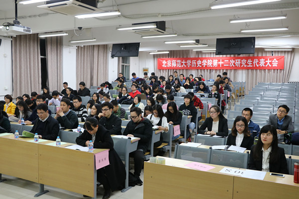 2016年11月5日晚7时,历史学院第十二次研究生代表大会在教二108顺利召开,出席此次代表大会的院系老师有:历史学院院长杨共乐老师、分党委书记耿向东老师、分党委副书记王卓凯老师、分团委书记胡小溪老师、专职辅导员李力老师;邀请到会的嘉宾有:sunbet申搏官方网站研究生会主席杜德健同学、信息科学与技术学院研会主席马配姿同学、古籍与传统文化学院研会副主席周雅珊同学、经济与工商管理学院研会主席刘赫同学、法学院研会权益部部长徐昊宇同学、资源学院博士服务部部长徐子涵同学;历史学院67名研究生代表出席此次大会。