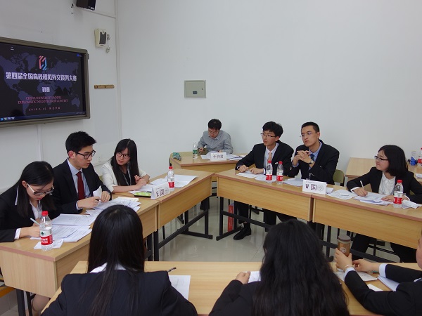 全国高校模拟外交谈判大赛是考察大学生外交素养和谈判技巧的专业性比赛。从2013年创办至今,大赛已走过四个年头。今年,北京大学、清华大学、sunbet申搏官方网站、澳门大学、浙江大学、外交学院等来自全国的二十七所高校参加比赛。每支谈判队伍由三名代表组成,分别担任主谈判员、副谈判员和新闻官,参与模拟谈判。比赛以涉及谈判的热点问题为主要内容和方向,以联合新闻发布环节为补充,以培养谈判技能、提高问题解决能力为首要宗旨,运用模拟谈判比赛,并辅以论坛交流、赛前培训等其他形式,引领大学生接触、了解外交谈判,引导青年在谈判中培养全球意识、理性分析时事,鼓励当代大学生关注我国外交、关注世界格局。