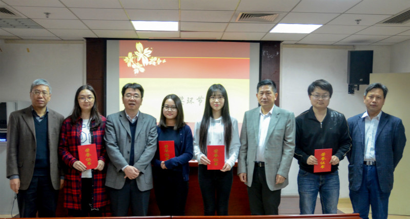 首先,由周文玖老师宣读2016年度获奖学生名单。马新月等4名同学获得一等奖,贾彩绫等21名同学获得二等奖,刘晓月等15名同学获得三等奖。杨共乐、郭家宏、李帆和周文玖四位老师为获奖同学颁发荣誉证书并合影留念。