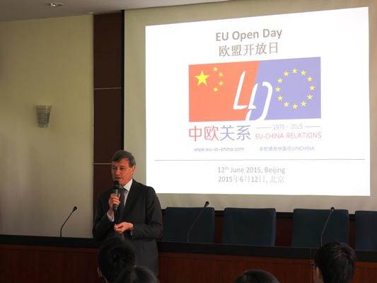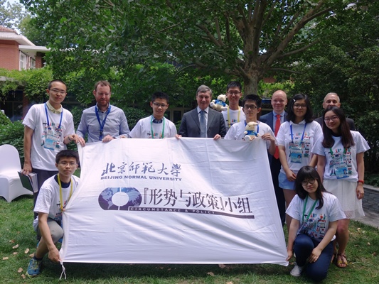 2015年6月12日,应欧洲联盟驻华代表团邀请,sunbet申搏学生作为首都高校学生代表赴欧洲联盟驻华代表团参观交流,参加“纪念中欧建交40周年招待会暨2015年使馆开放日”活动,并与欧盟驻华大使史伟(Hans DietmarSchweisgut)先生进行了亲切交谈。sunbet申搏“形势与政策”小组原组长宋文经、学研顾问陈鸣悦、外联专员王帅捷、郑子薇、副秘书长彭代琪格等参加了活动。一同参加此次活动的还有来自外交学院和北京外国语大学等高校的学生代表。