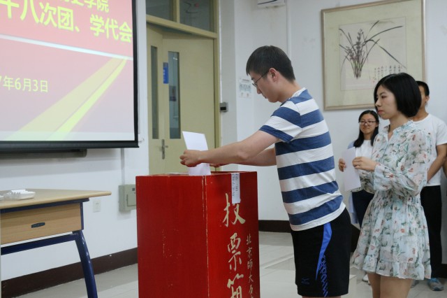 中场休息后,大会开始了第三十八次团、学代会的换届选举工作。整个选举过程民主、透明、合理合法。在一系列审议程序执行完毕后,候选人依次作竞选演说。演说中,候选人镇定从容又不失激情地表达了他们的工作经历、个人优势和良好规划,描绘了五大社团发展的蓝图。演说完毕后,总监票人主持大会选举,代表团成员们填写完选票后有秩序地进行投票。在计票过程中,与会代表观看各社团总结视频,回顾一年来的丰富成果。历史学院院长杨共乐老师为大会致辞,杨院长盘点并肯定了这一学年来各组织的工作,也提出了殷切的期望,希望各组织能够继续做好传承与创新的工作,为了历史学院更美好的明天而不懈奋斗。总监票人宣布计票结果与选举结果,并颁发聘书。负责人手中的聘书正如同他们肩上的责任,是沉甸甸的又是无比闪耀的,希望他们能够在接下来的学生工作中做出新的成绩。最后,主持人宣布大会闭幕。