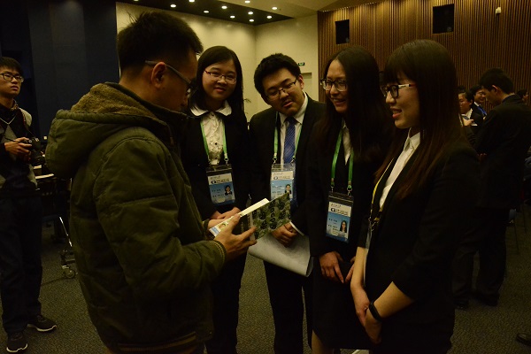 当天的例行记者会由外交部新闻司副司长耿爽主持。会上,中外媒体就缅北局势、中菲南海问题、“跨太平洋贸易伙伴协定”(TPP)、阿富汗自杀式炸弹袭击、日本福岛地震等热点事件向发言人提问。耿爽发言人一一予以回应,表明我方态度立场。同学们聚精会神听取问答,不时记下笔记。