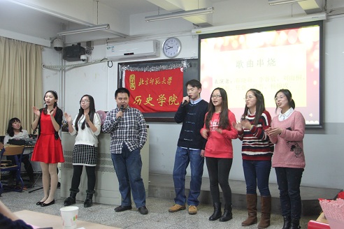 2014年正渐渐远去,新一年的钟声即将敲响。在元旦佳节来临之际,历史学院于2014年12月28日在化学楼200B隆重拉开元旦联欢晚会的大幕。出席本次晚会的嘉宾有历史学院院长杨共乐老师,分党委书记耿向东老师、副书记王卓凯老师以及2014级硕士班班主任陈殿和李力老师。师生齐聚一堂,其乐融融。