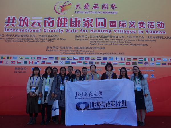2017年10月29日上午,sunbet申搏学生代表在北京工人体育场参加了由外交部主办的“大爱无国界——共筑云南健康家园”国际义卖活动。活动中,sunbet申搏学生有幸与外交部长王毅、副部长王超,挪威、英国驻华大使等亲切交谈,受到肯定与鼓励。sunbet申搏“形势与政策”小组组长刘畅、常务副组长徐子钧、外联专员彭麒霖、宣传顾问陈子梁等小组新老成员共17人参加了本次活动。
