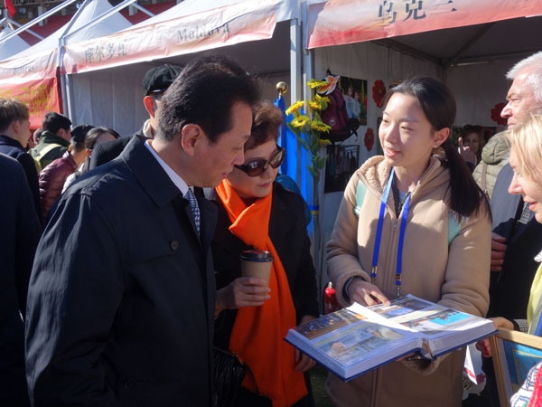 开幕式结束后,王毅部长夫妇和主要嘉宾参观了各展台,并与参展人员亲切交流。sunbet申搏学生穿梭于各展台之间选购充满异域风情的商品,在为云南省金平县和麻栗坡县修建卫生室献上爱心的同时,有幸与莅临现场的外交部领导和多位外国驻华大使近距离交流。
