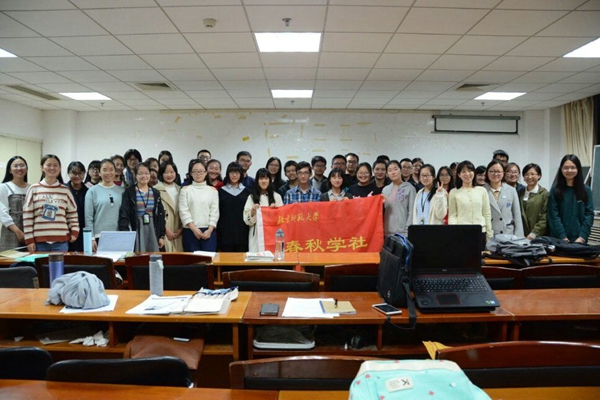 在认真聆听完张闶的对于满文文献的讲解后,同学们提出了自己心中的疑问,与他进行了简单的探讨交流,张闶的耐心解答,使大家受益匪浅。至此,读书会已接近尾声,全体参会人员和张闶合影留念,并欢送他离场。最后,社长洪英对这次读书会进行了总结,强调了读书会对于拓宽历史视野、丰富历史知识的重要作用,为社员们的学习生活提出了宝贵的建议。至此,春秋学社第一次读书会圆满结束。