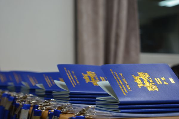 第十一届“形势与政策”小组组长刘畅、常务副组长徐子钧、秘书长何昕、副组长兼学研专员宁轩分别为新生授发胸牌并合影留念。与以往不同的是,除了胸牌,小组的新成员还得到了“形势与政策”小组护照。该护照由于斯寒、周天一同学设计,在本次全会上,小组护照首次推出。打开护照,前几页是北师大的校徽、小组的标徽以及声明,签证页的底纹是北师大的标志性建筑,每次活动结束,小组会安排制作贴纸签证或盖章,这样新老生参加各种活动都会有记录。小组护照既应允了招新时的承诺,又承载着小组人的情怀。只要你加入了小组,就永远是小组的一员。只要你拿出护照,就能证明你曾经在小组成长过,为小组奋斗过。周天一、于斯寒、刘畅、何昕分别为小组历届组长、常务副组长、秘书长,现任领导团队成员,以及第十一届顾问授予护照。