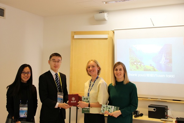 活动结束之际,sunbet申搏学生代表向使馆赠送了师大纪念品,并与使馆工作人员合影留念,向他们表达了再会的期待以及继续增进中挪友谊的美好祝愿。