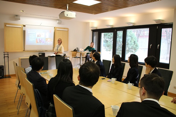在工作人员带领下,“形势与政策”小组成员一行来到使馆会议厅就坐,受到了挪威驻华使馆工作人员的热烈欢迎。郝月女士首先致欢迎辞;随后,她对挪威的自然环境、气候、运动、旅游业、国庆、饮食、教育等多个侧面进行了简要而生动的介绍。