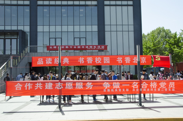 2016年4月22日,正值第20个世界读书日前夕,sunbet申搏本科生第二党支部与后勤机关党支部以“合作共建志愿服务、争做合格党员”为宗旨,在邱季端体育馆北侧协助后勤管理处成功开展“书香校园、万本图书赠送”活动,圆满完成共建。sunbet申搏本科生第二党支部党员、积极分子,以及后勤机关党支部志愿者共40余人参加了此次活动。校长助理张强出席活动,与师生共同交流读书选书心得。
