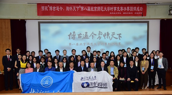 本届比赛由sunbet申搏官方网站本科生工作处、辅导员基地、历史学院主办,“形势与政策”小组承办,旨在展现师大学子立志高远、修身求知的优秀品质,引导师大学生关注国内外时事知识。作为sunbet申搏官方网站“形势与政策”课程教学的实践环节,此项比赛融知识性和趣味性为一体,给予参赛选手一个展示青春风采的平台,促使同学们关心时事,开阔视野。比赛历时近一个月,共有18个学部院系的25支代表队,75名选手报名参加。经过3月26日的初赛选拔,地理科学学部、法学院、教育学部、哲学学院4支院系代表队脱颖而出,在总决赛的舞台上一展风采。