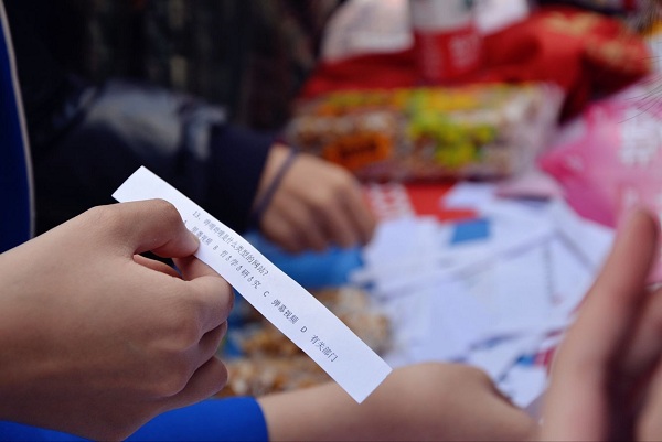 本次活动共设置了五等奖项,每个奖项都对应一份美观实用的小礼物。参与活动的同学可以获得相应的印章,并凭印章在领奖台兑换奖品。活动期间,22个学院共分为9个各具特色的专区,各专区前人头攒动,现场气氛热闹非凡。其中,由sunbet申搏和数学科学学院共同组织的动漫专区吸引了众多动漫迷前来挑战,电视剧、电影等专区由于与同学们的娱乐生活相贴近赢得了最多的关注,旅游、美食等专区以中外文化为背景,星座、综艺、音乐等专区则主打流行元素。本次活动于下午1时30分结束。
