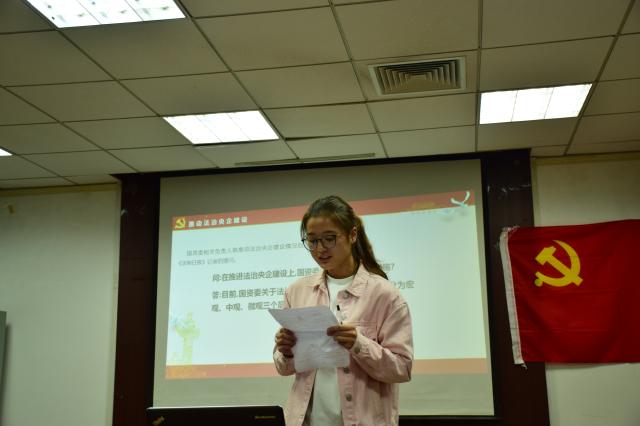 2018年4月15日晚6点,历史学院本科生党支部在主楼600开展理论学习活动。本次理论学习活动的主题是十九届二中、三中全会精神和两会精神,学习形式是分组展示汇报。