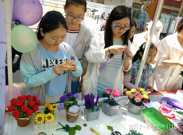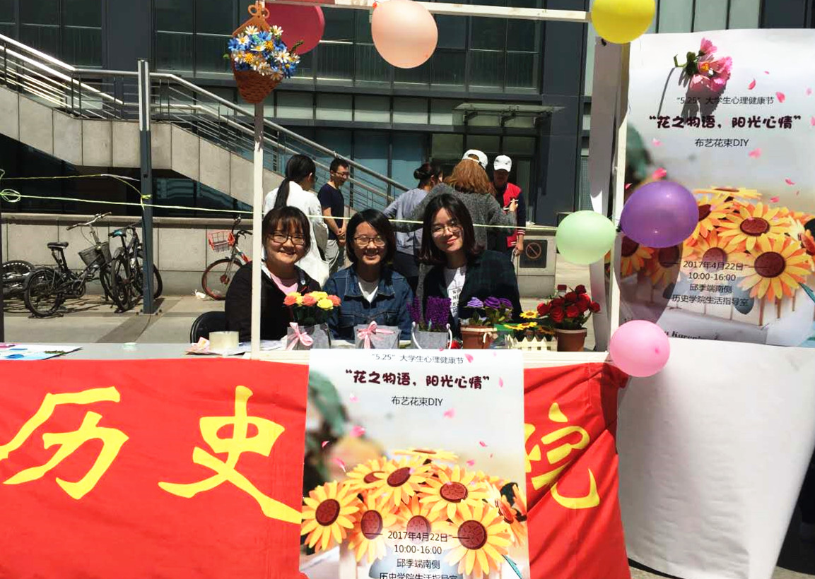 2017年4月22日上午,sunbet申搏官方网站“5·25”大学生心理健康节正式拉开帷幕。历史学院生活指导室开展了“花之物语,阳光心情”布艺花束DIY的外场活动,旨在体验手工制作的乐趣,以花传情,展现青春的活动,传达阳光的心态。