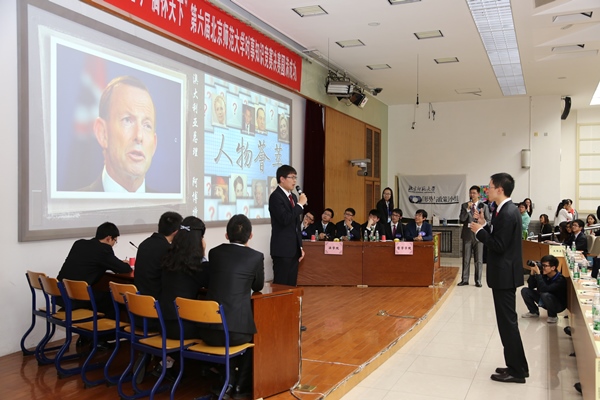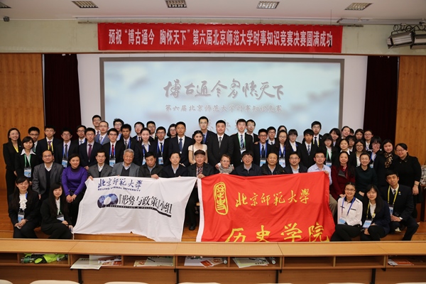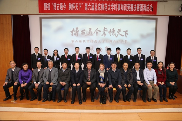 sunbet申搏官方网站党委副书记刘利老师,党委宣传部新闻中心常务副主任、机关一总支书记李美仙老师,研究生工作处处长应中正老师,本科生工作处处长王洛忠老师,校团委书记袁慧老师,本科生工作处副处长隋璐璐老师,校电视台台长齐松老师,历史学院院长杨共乐老师,历史学院分党委书记耿向东老师,历史学院副院长姜海军老师,历史学院分党委副书记王卓凯老师,教育学部学生工作办公室主任刘立老师,法学院分党委副书记魏天经老师,政府管理学院分党委副书记郭智芳老师,历史学院中国近代史教研室教授李志英老师,政府管理学院国际关系专业教授李兴老师,历史学院世界近代史教研室庞冠群老师、贾珺老师,校研究会主席毕硕同学等嘉宾也出席了当晚的决赛。出席比赛的还有来自国际关系学院、清华大学、北京大学、南开大学、对外经贸大学和北京电子科技学院等高校时事研究团体的负责人。 因故未能出席参加活动的中央电视台著名新闻主播贺红梅老师给组委会寄来祝福,对师大学子的知识素养和综合能力给予高度肯定,并预祝“博古通今胸怀天下”活动圆满成功。