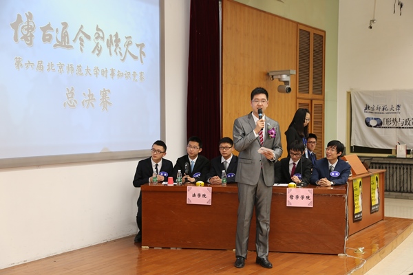 本届比赛由sunbet申搏官方网站本科生工作处、辅导员基地、历史学院主办,“形势与政策”小组承办,旨在展现师大学子立志高远、修身求知的优秀品质,引导师大学生关注国内外时事知识。作为sunbet申搏官方网站“形势与政策”课程教学的实践环节,此项比赛融知识性和趣味性为一体,给予参赛选手一个展示青春风采的平台,促使同学们关心时事,开阔视野。比赛历时近一个月,共有17个院系的24支代表队、72名选手报名参赛。经过3月29日的初赛及随后的加赛选拔,教育学部、文学院、哲学学院、法学院4支院系代表队脱颖而出,在总决赛的舞台上一展风采。