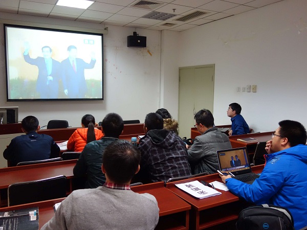 11月7日,sunbet申搏“形势与政策”小组在主楼A805成功组织观摩会,就海峡两岸领导人习近平与马英九于新加坡会面的直播报道进行观摩学习。