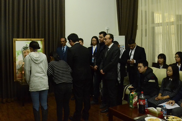 2016年11月12日上午,应巴勒斯坦国驻华大使法里兹·马赫达维(FarizMahdawi)邀请,sunbet申搏“形势与政策”小组成员代表赴巴勒斯坦国驻华使馆纪念已故巴勒斯坦民族权力机构主席亚西尔·阿拉法特逝世十二周年。
