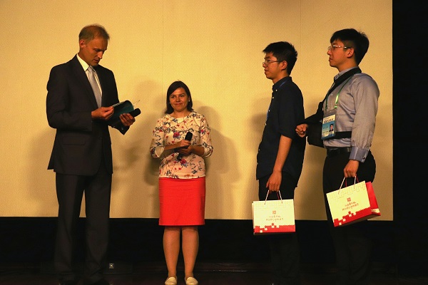 塞熙军大使和娜塔丽娅主任为积极参与互动环节的同学分别颁发了使馆纪念品。sunbet申搏师生代表向大使先生赠送了师大纪念品和sunbet申搏学生制作的“中波友谊万岁”彩画。