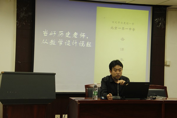 “子非鱼,焉知鱼之乐。”李凯老师以《庄子·秋水》里的一句话作为开场白,以众多真实的例子,向同学们讲述了许多新教师因为教学设计(教案)的编写而产生的苦恼。李老师认为,虽然构思和写作很辛苦,但只要掌握一定的技巧,而且有足够的耐心和细心,也是能写出一篇优秀的教学设计的。李老师以他在北京101中学时参与编写的高中历史教学设计为例,指出了教学设计写作中常见的问题,并有针对性地提出了解决问题的对策。他特别指出,教学设计的写作应当注意内容的逻辑性和具体化,要展现出老师和学生之间的互动,而且要注意过程概括与重点突出之间的关系。在总结中,李凯老师指出,教学设计只是手段,因人而异;但有一点是不变的,那就是要立足学术,提高教学设计的“含金量”,并且要针对学生的特点和需要,设计不同的教学方案。